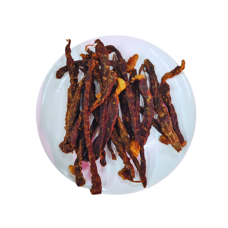 Our Beef Biltong Chilli Sticks has a medium bite, perfect as a snack item.